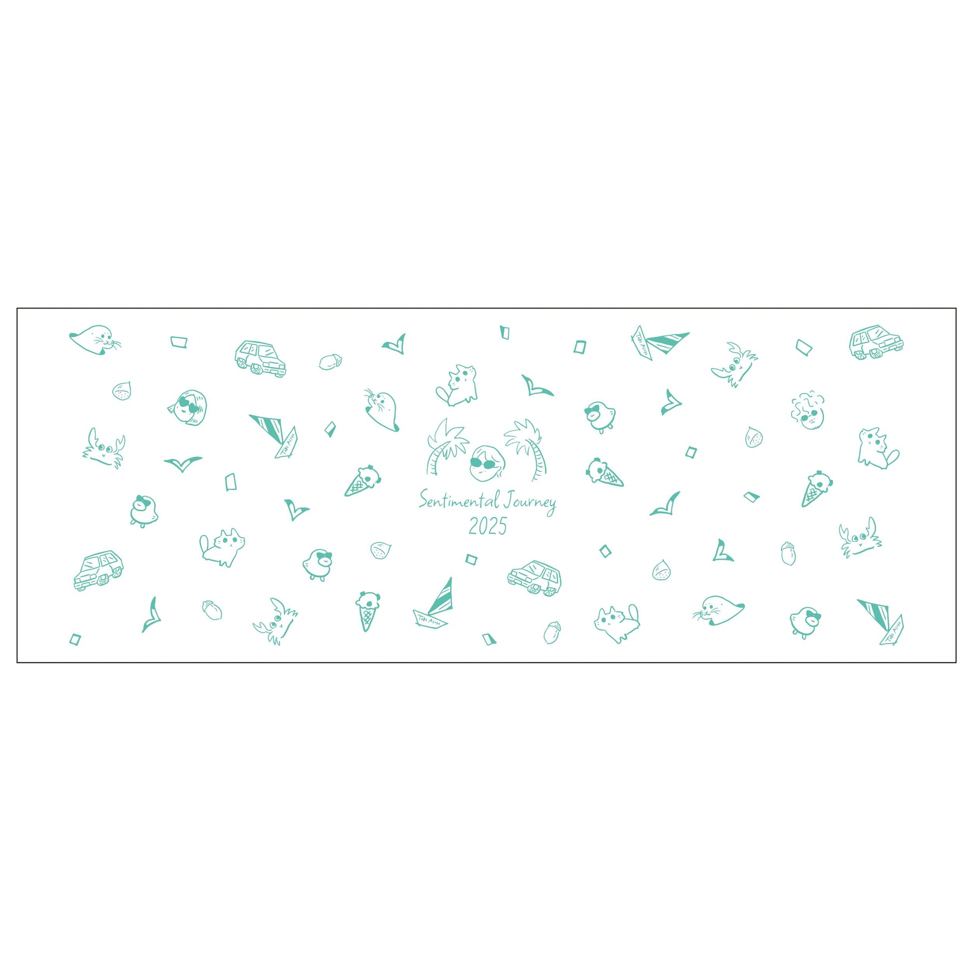 「Sentimental Journey リバイバルグッズ」第一弾!2023年のSentimental Journey ツアーのときに好評でした手ぬぐいが、ペパーミントのデザインカラーになって登場!土岐麻子の描いたイラストが可愛い、使い勝手の良い手ぬぐいです。